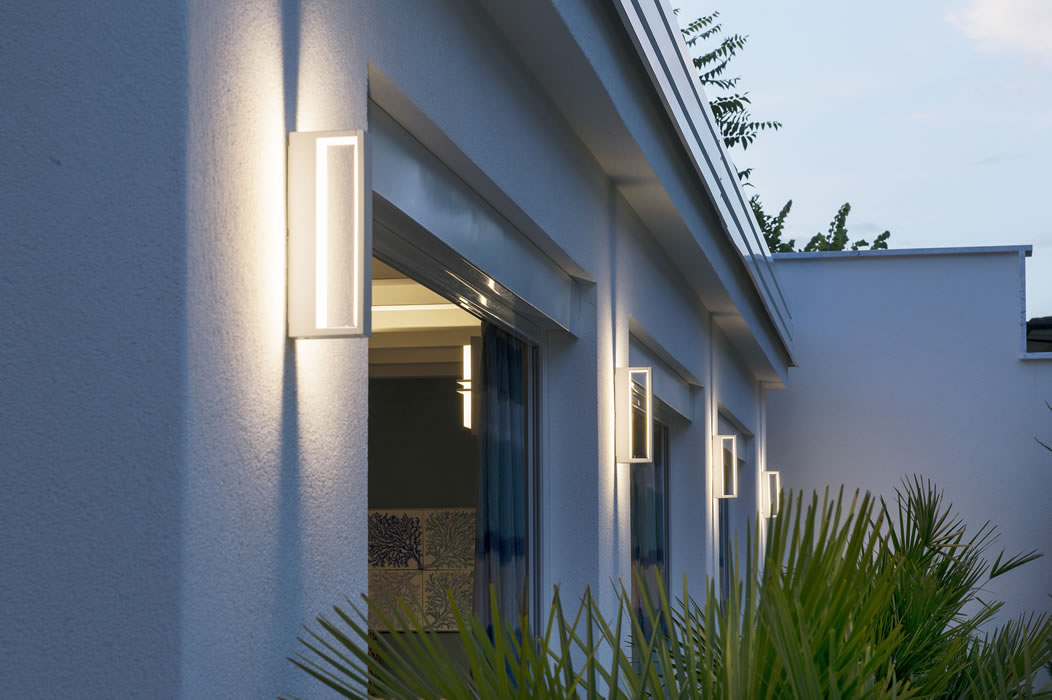 Cool è un semplice volume cavo che diffonde luce indiretta tramite un sottilissimo circuito posto in aderenza al vetro che lo protegge. Disegnato con sorgenti LED di ultima generazione sfrutta appieno tutta la potenza riducendo notevolmente gli ingombri e i consumi. Pensato in diverse versioni, armoniche e complementari, la famiglia propone un nuovo modo di illuminare gli ambienti. Cool applique da parete a LED da esterno dalle geometrie sottili ed eleganti è ideale per illuminare pareti esterne o zone umide come spa, piscine e centri wellness.