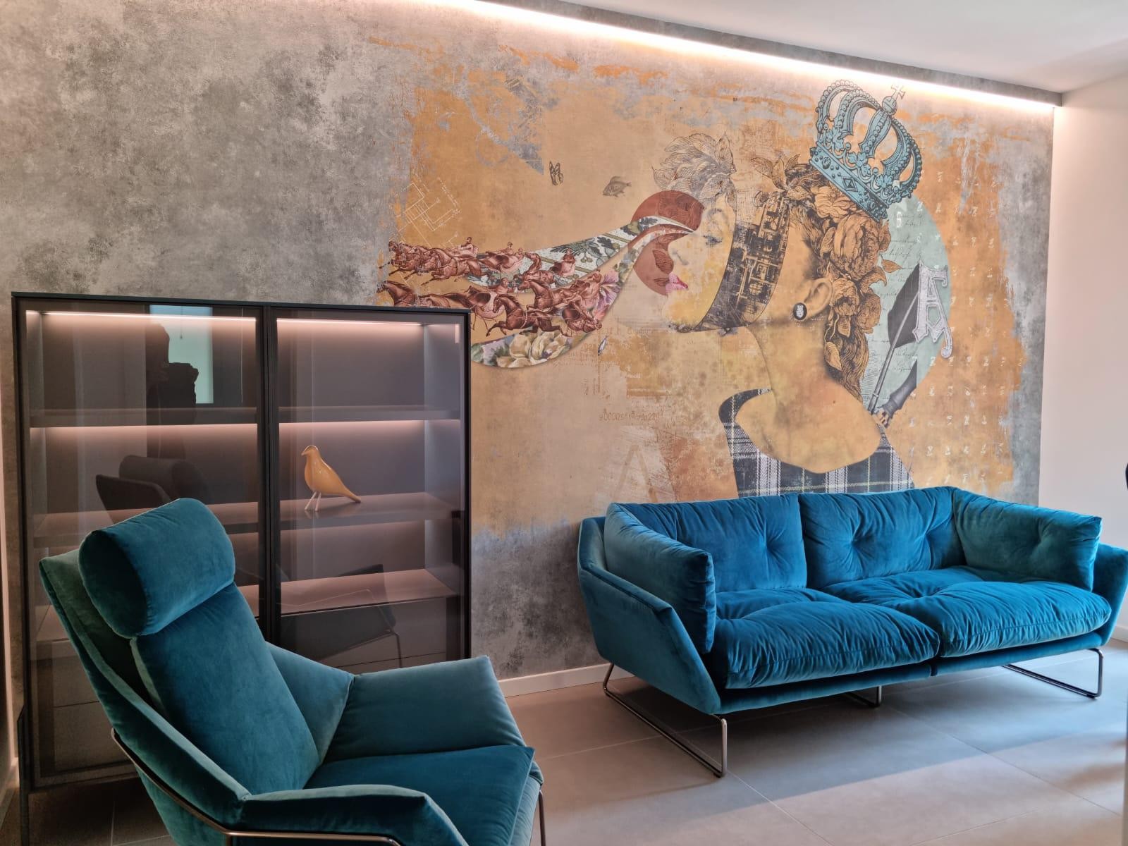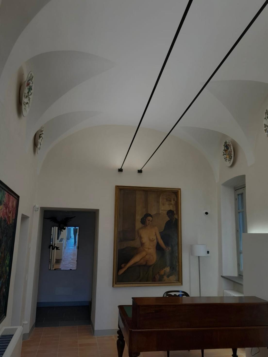 Nello studio sono state installate due tesate “Infinito” di Davide Groppi, scelte per la loro capacità di creare una linea luminosa continua e minimale, perfettamente integrata con l’architettura. Nel salone è stato inserito il profilo v-90, ottima soluzione tecnica che garantisce una luce uniforme e ben distribuita.